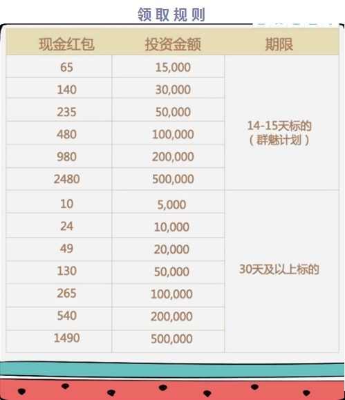| 如果有,那就来两个 两个还不够?那就来一打 今天特地给大家带来了一大波红包雨 解暑降温还有钱赚 赶紧上车吧! 正确的姿势,是成功的一半 1、渠道新注册用户完成首投(新手标除外)后即可领取红包; 2、非渠道注册用户均可领取红包; 3、红包每人每天限领一次。 4、活动时间:8月10日—8月31日 |