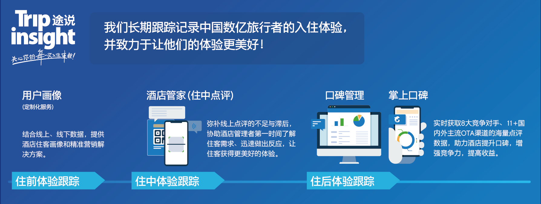 世界旅游组织2030年世界旅游趋势 为了提升旅行者的出行幸福感,途说“关心你的每一次入住体验”,从细节出发,致力于为出行领域贡献一份力量: 途说通过打通旅行者住前、住中、住后的入住体验数据,帮助酒店管理者/供应商提供更优质的服务。
