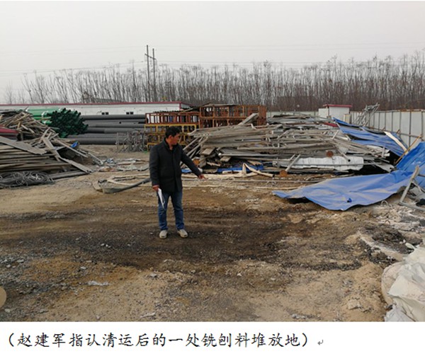 “铣刨料的材质是沥青和石子,不起尘,不在防尘治理范围内,属于环保可再利用材料,场地隔壁就是一个煤灰加工厂,当时都没有关停,还有一个占地一百多亩的私搭乱建场地,为什么不治理呢?”赵建军对办事处的做法感到不解。