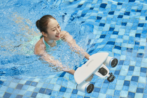 就算你不会游泳也没关系,带上SublueTM Swii智能动力浮板,你就再也不用傻傻的坐在泳池里“泡澡”了。可以说,有了它你便能摆脱技能束缚,成为泳池C位。Swii智能动力浮板有着宇宙飞船一样的炫酷外形,双手同时按住两侧开关,就能开启水上“飞翔”之旅,即使是游泳“菜鸟”或是儿童,拿到Swii智能动力浮板后也能轻松上手。首创将两个推进器嵌入设备主体,提高了在水中的动力和稳定性,遇到异物能够在0.2秒内紧急制停,保障使用时的安全性。此外,它还可通过APP实现两档速度0.6m/s和1m/s 之间的切换,实现个性化体验。