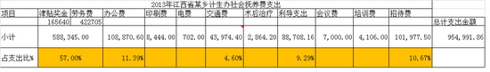 每年征收额高达数百亿元的社会抚养费到底去哪儿了?民众对这笔特殊资金的用途一直存在质疑。近日,一位内部人的爆料进一步揭开了社会抚养费管理上的神秘面纱。 一个乡镇的社会抚养费支出样本 报料的这位内部人,因工作原因接触到2013年江西省某乡镇的社会抚养费支出明细。尽管此前听说过社会抚养费的使用比较混乱,眼前的各种账单依然让这位人士深感意外。 据他介绍,该乡镇2013年征收社会抚养费107.10万元,其中10%上缴县计生委,上交额为10.71万元。剩下的96.39万元全部由计生部门支出(如下图,极少量支出因票据缺失暂空)。